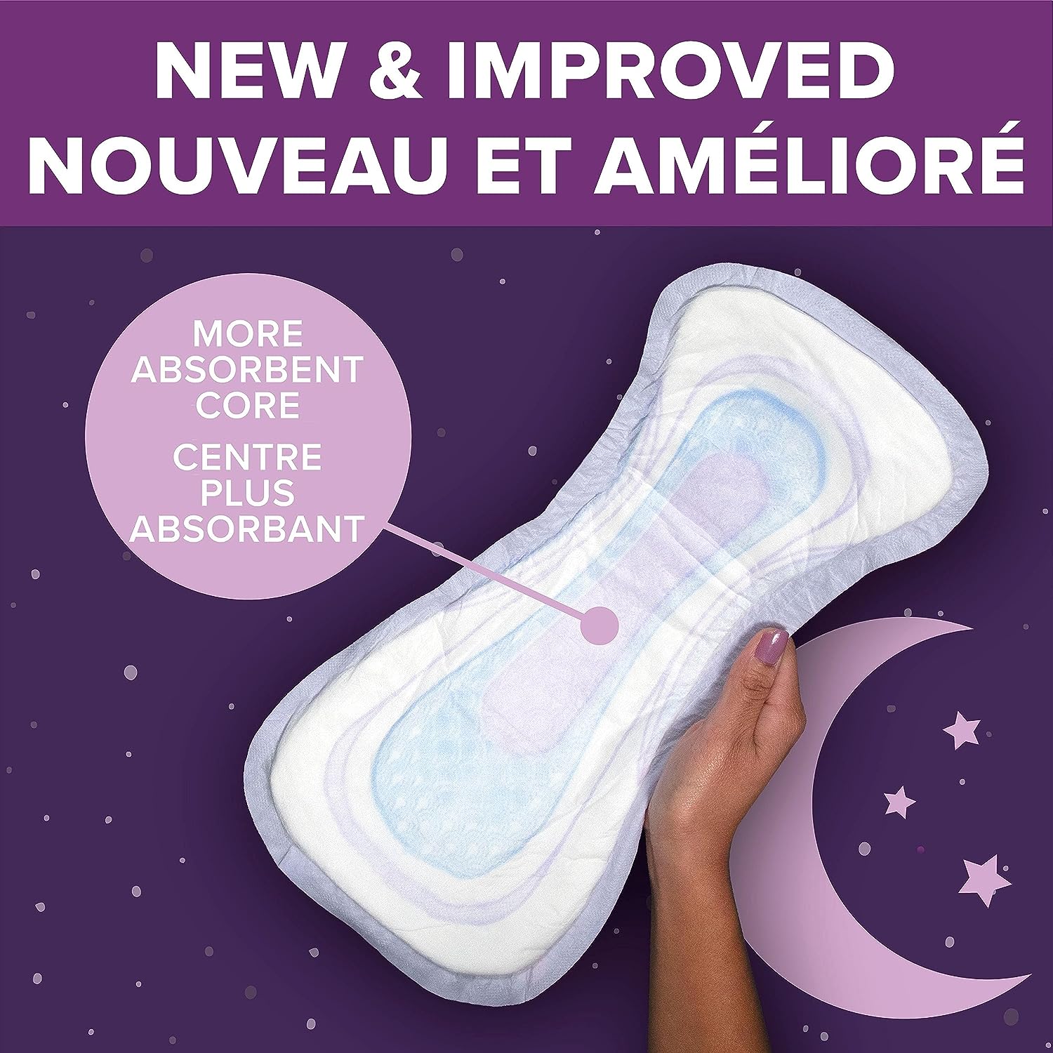 • Stay Dry: remain comfortable throughout the day and help keep wetness away from your skin with the best night time protection**—it features a 75% wider back*** and keeps you 10x drier than the leading period pad.